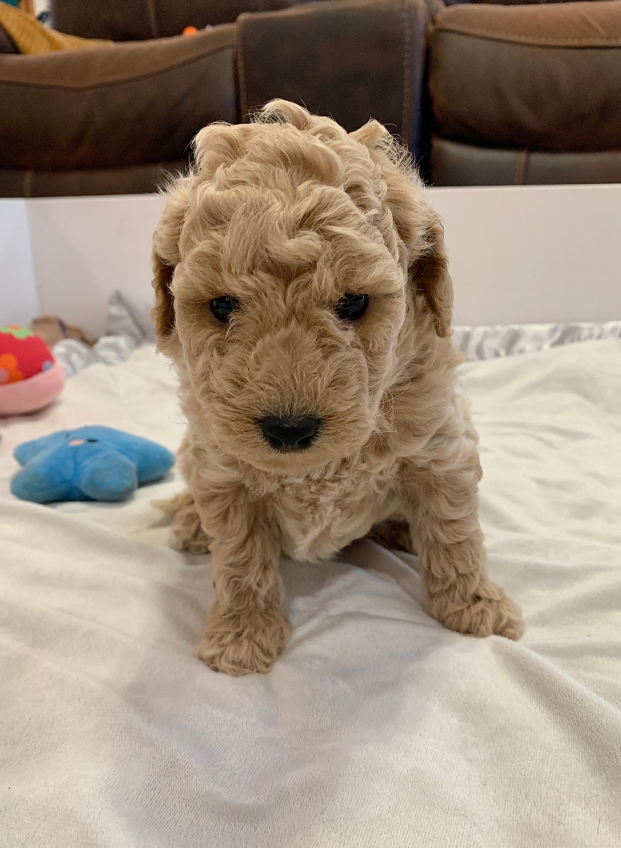 Charlie is a happy go lucky boy! He loves all the snuggles is like a teddy bear. He is a beautiful cream color and will grow to be around 12-18 lbs full size. He currently weighs 2.07 lbs. He is non shedding. He will be up to date on his first two rounds of vaccinations and dewormings. He will be vet checked and cleared before leaving. He will be ready for his new home by May 29th.