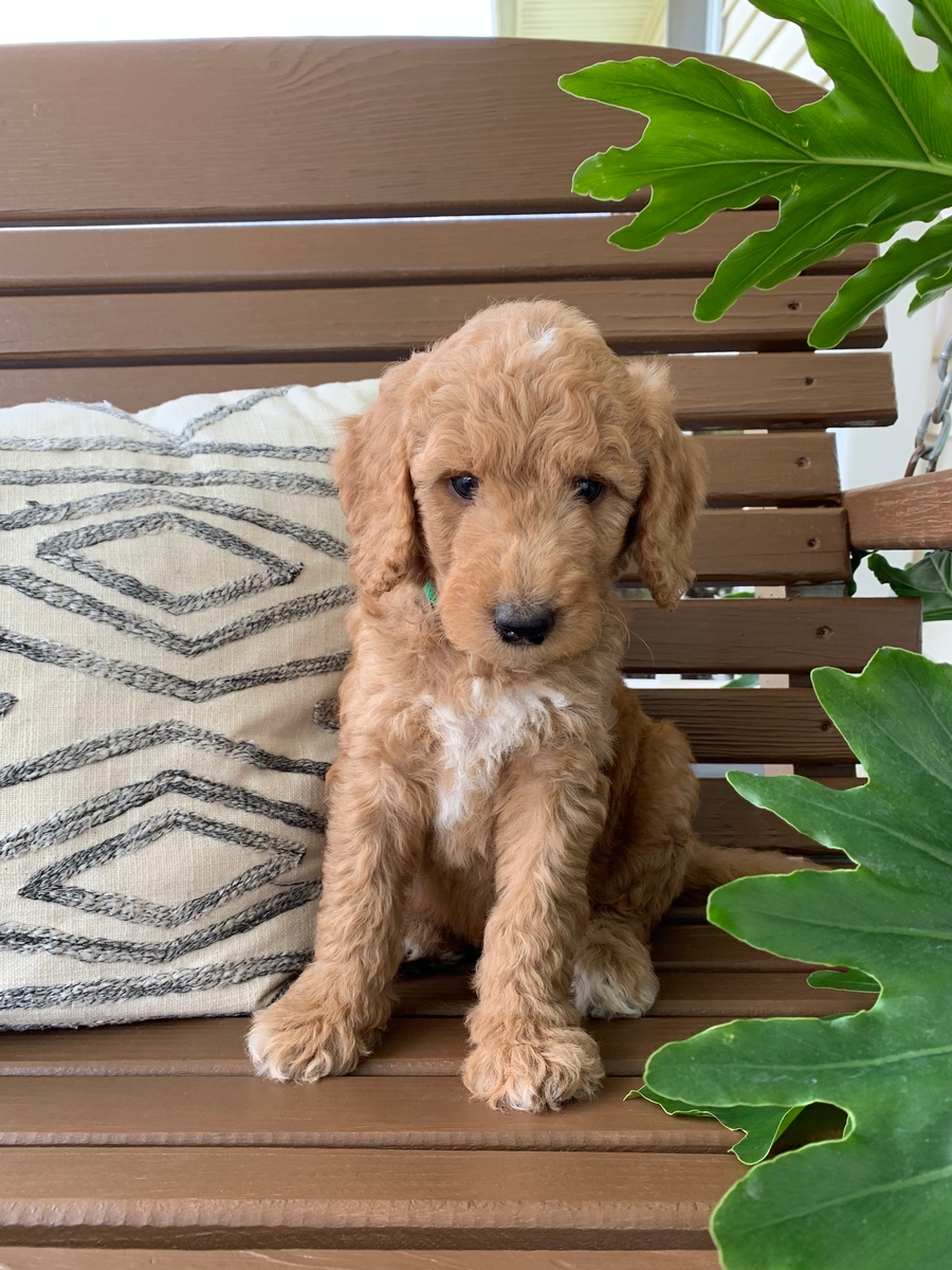 Jace is such an affectionate heart stealer! He has so much love to give and is sure to brighten your days! Such a big snuggler too. He is an F1b medium Goldendoodle. Ready by May 19th. Hypoallergenic, non shedding and will grow to be around 30-55 lbs full size. Puppy starter pack included.