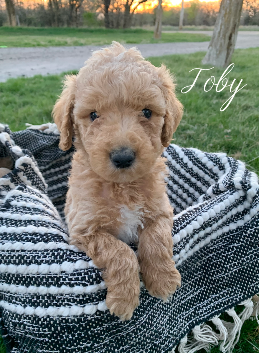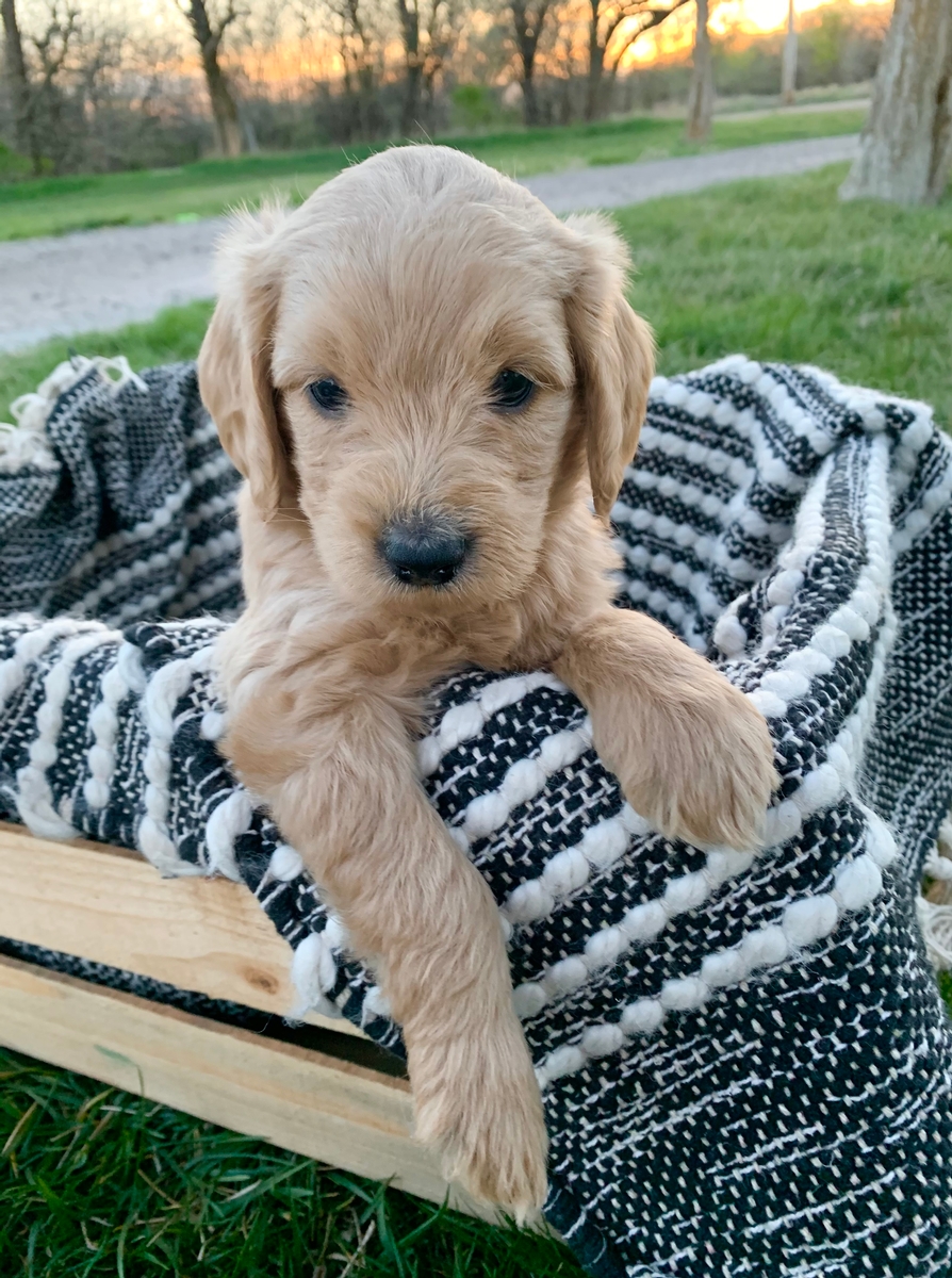 Timmy is such a sweet and loving boy! He is a f1b medium Goldendoodle and is 8 weeks old, ready to go any day! He is non shedding and will get lots of loose curls and waves. He is calmer and loves all the snuggles he can get. He is sure to melt your heart and will bring so much joy to your home!