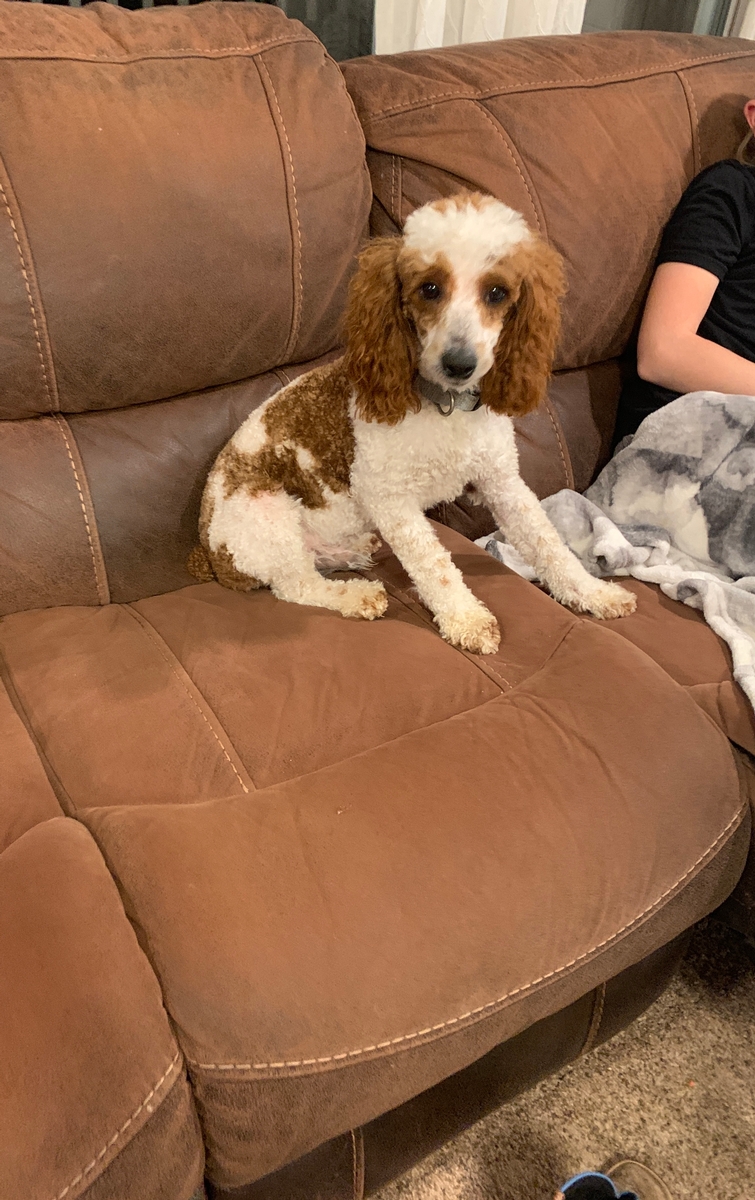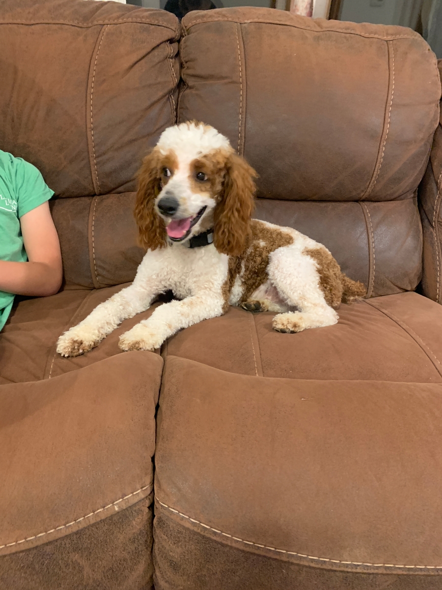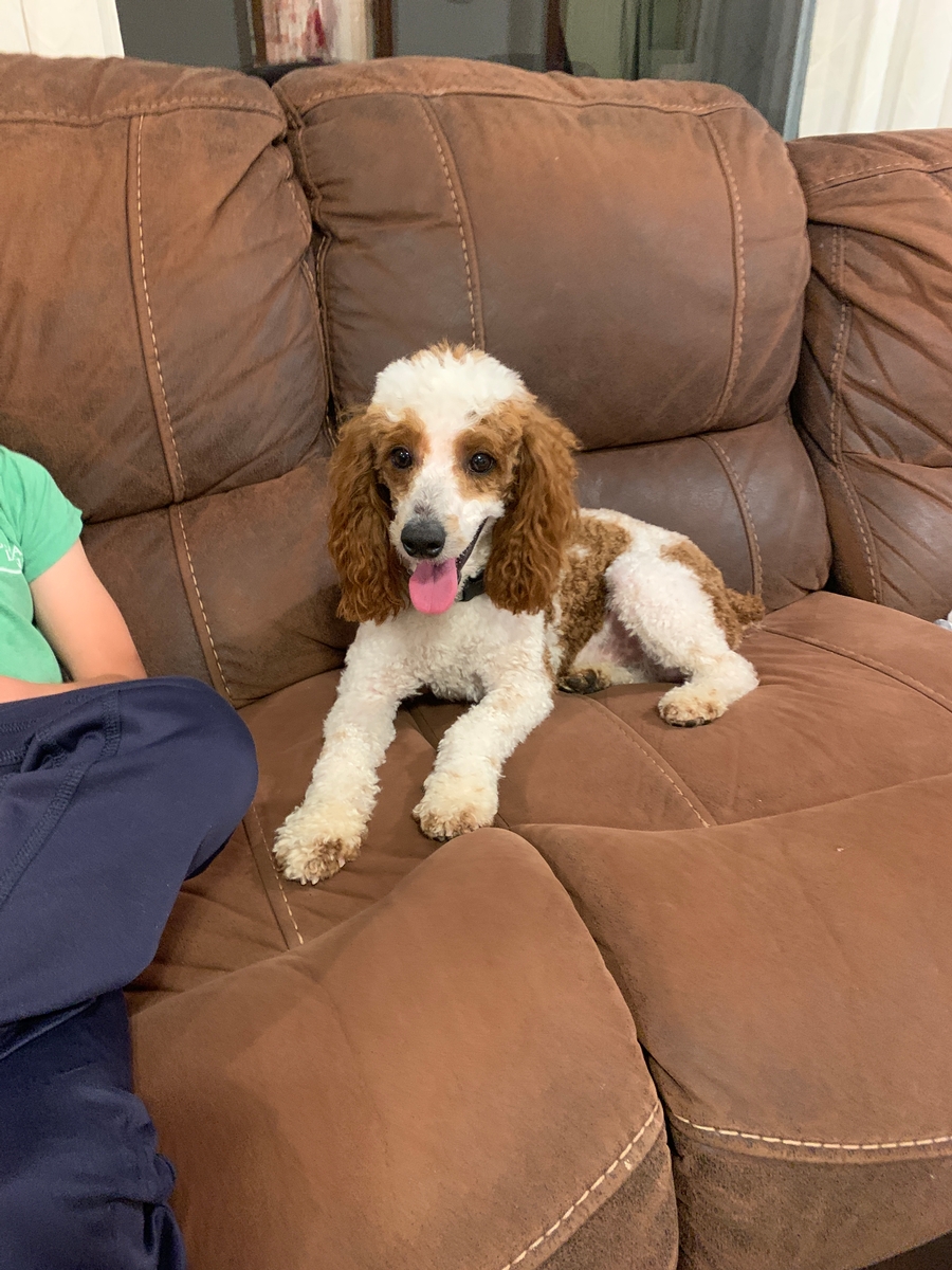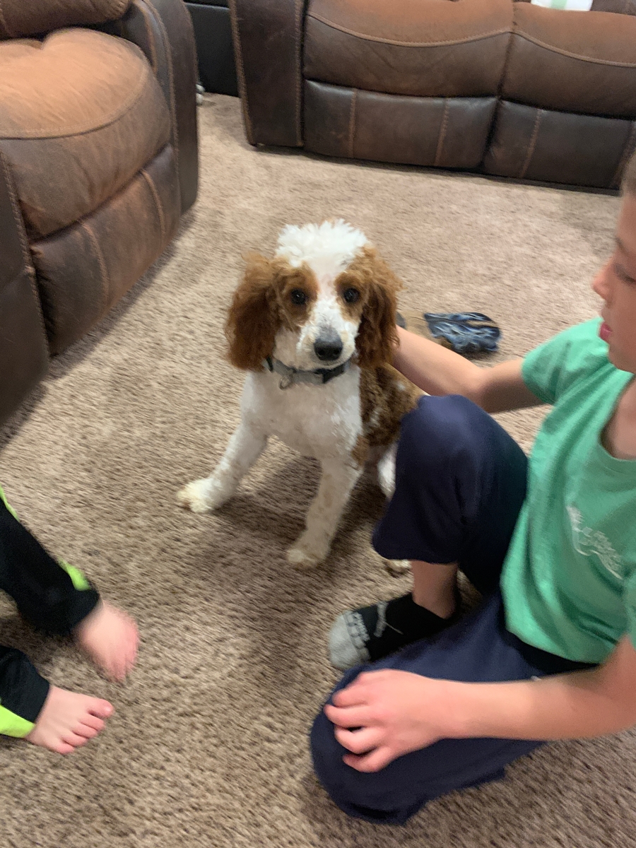 Kingston is our newest mini poodle stud in our program. He is such a happy and loyal boy! He is very intelligent and gentle too. We are excited to see what colors and markings he will produce. He is AKC registered and health and genetic tested and he is clear on all panels.