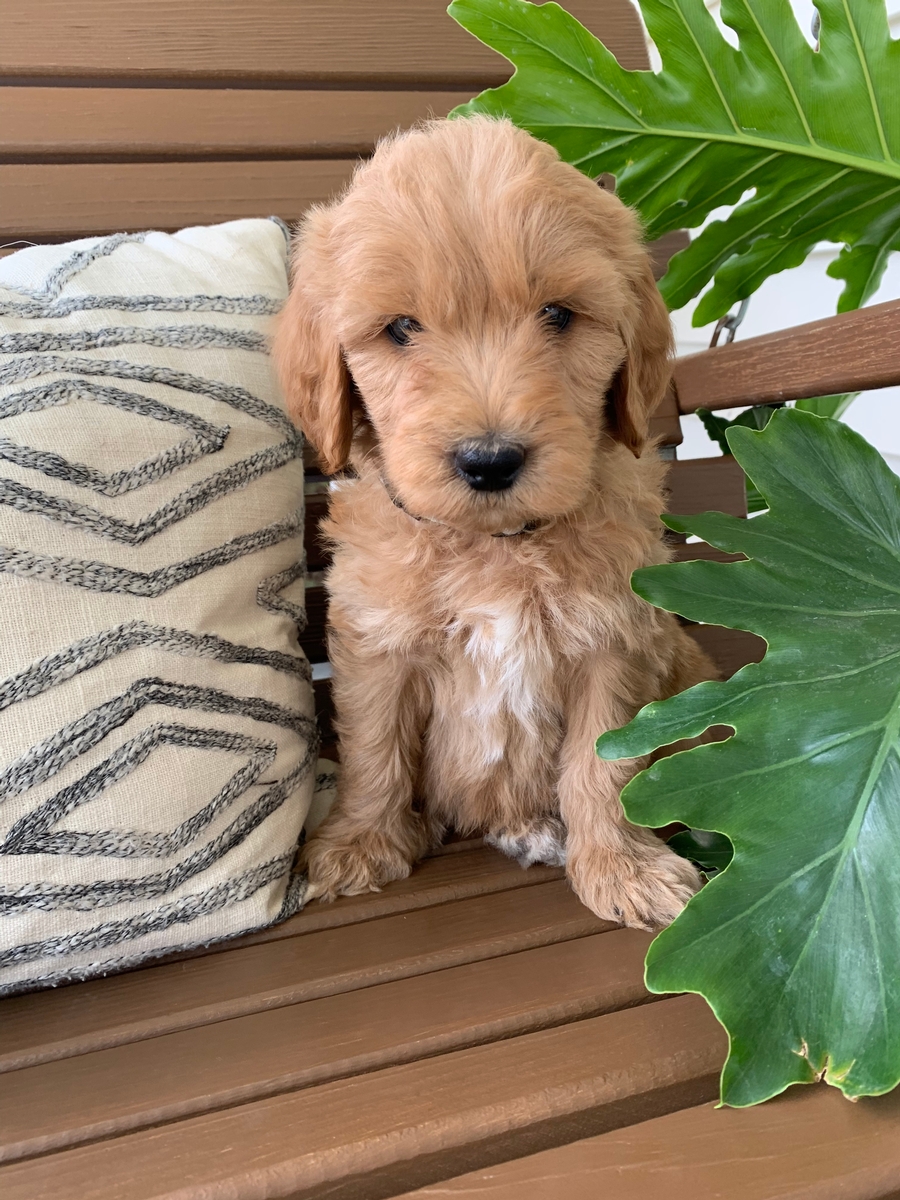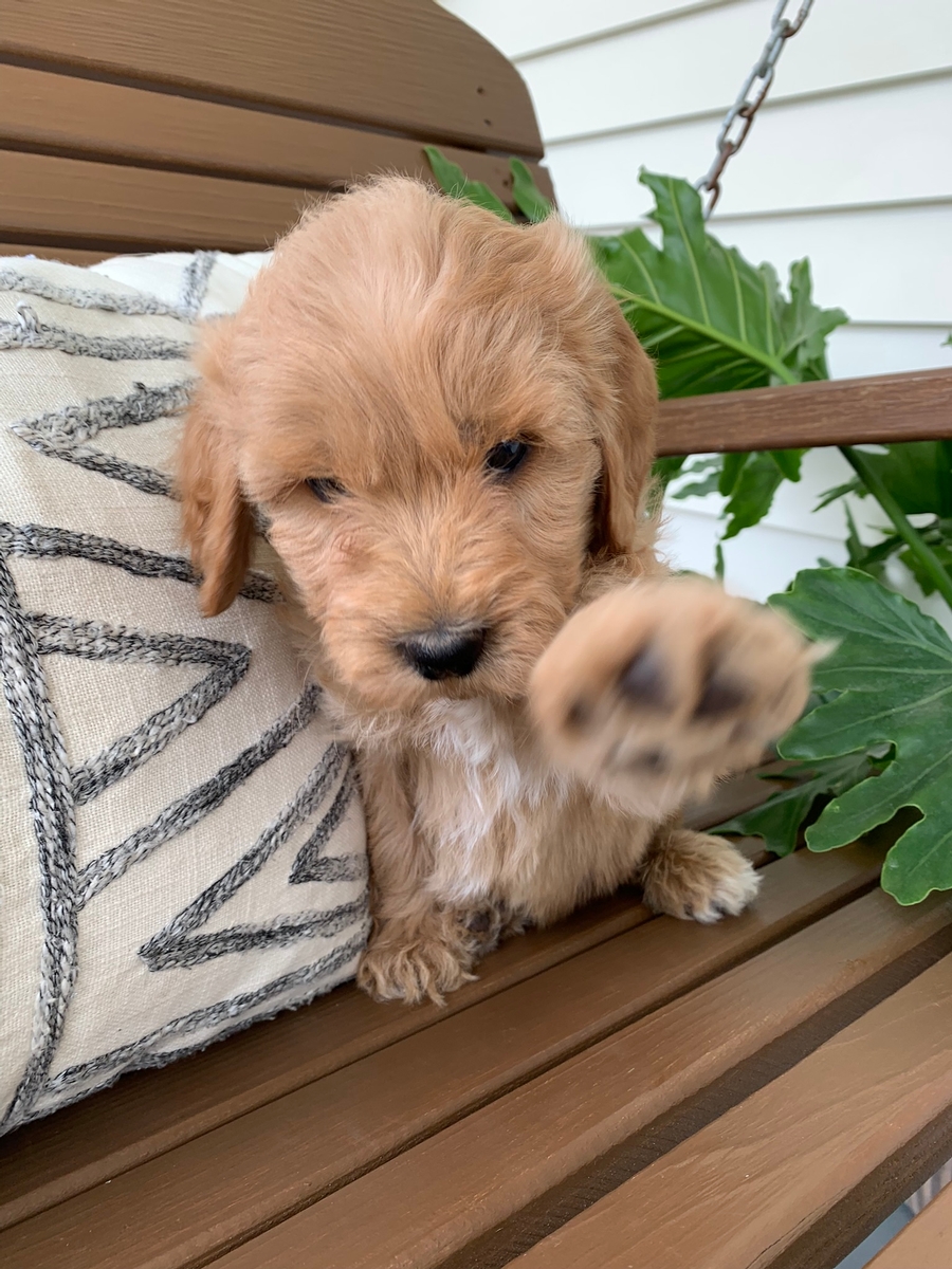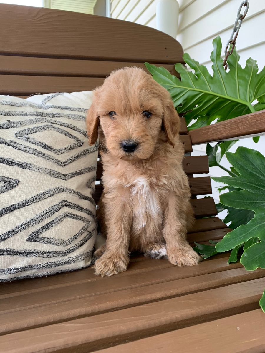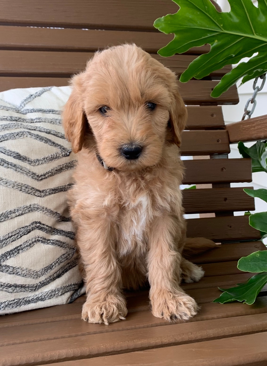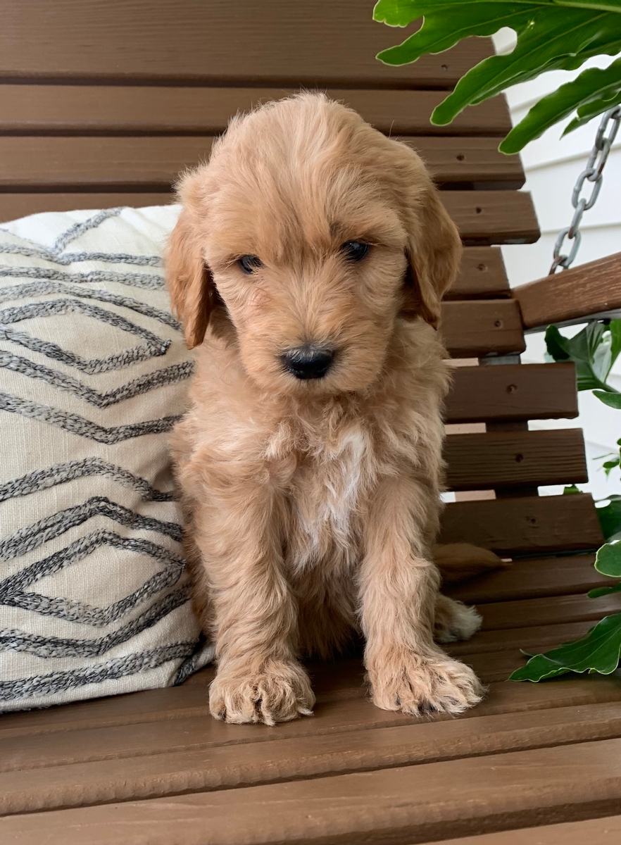 Jace is such an affectionate heart stealer! He has so much love to give and is sure to brighten your days! He is such a big snuggler too. He is an F1b medium Goldendoodle. Ready by May 19th. Hypoallergenic, non shedding and will grow to be around 30-55 lbs full size. Puppy starter pack included.